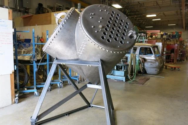Boiler Heart was built from the building’s original steam boiler from 1907. Supported on a triangulated steel tube frame, it keeps beating with a steady pulse of glowing light.